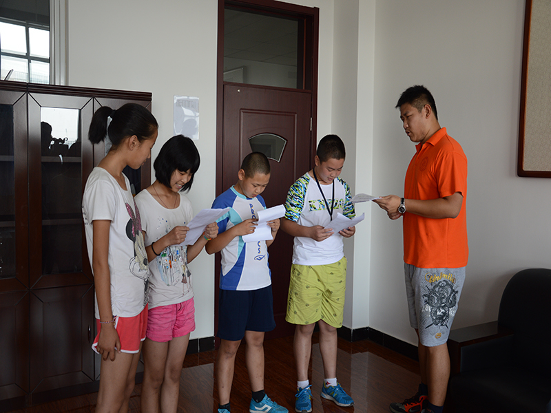 豐富多彩的二課堂如期而至,書法課上,小營員們繼續(xù)保持專注與認真的積極態(tài)度,努力練習,字跡有了明顯的改善。商辯課開展了以“善意的謊言是否是不誠信的表現(xiàn)”為主題的辯論賽。課堂上,學生為辯護自己的主題,展開了一次唇槍舌戰(zhàn),初步感受到了商辯的魅力。隨著悠揚的鋼琴聲,合唱課的小營員們不僅大聲地唱出了《仰望星空》、《想唱就唱》、《和你一樣》這三首歌,還在唱歌的基礎上加上了手語展示。其中初一(2)班的劉思佳同學說道:“我喜歡唱歌,能來唱歌我感覺很開心,哥哥姐姐都非常好,我希望能與他們成為朋友,即使夏令營結束了,也還能常聯(lián)系。”此外,體育課開始在室內體育館中進行,今天主要練習的體育項目是花樣跳繩無論是花式的跳繩動作,還是帥氣的籃球姿勢,亦或是足球的障礙運球,他們都盡力做到最好。學生教師葛奕含看到這一幕表示:“我真的很欣慰,覺得所有的辛苦付出都得到了回報。同時,我也很心疼他們。小營員們自覺、刻苦,有不會的動作會自己去練,即使汗流浹背,也不愿停歇。這種堅持不懈的精神令我欽佩。”學生教師與長溝中學的學生創(chuàng)造了一段又一段美好的記憶。希望學生教師與學生能夠珍惜這段美好的時光,將它永遠的留在記憶中,永不消逝。