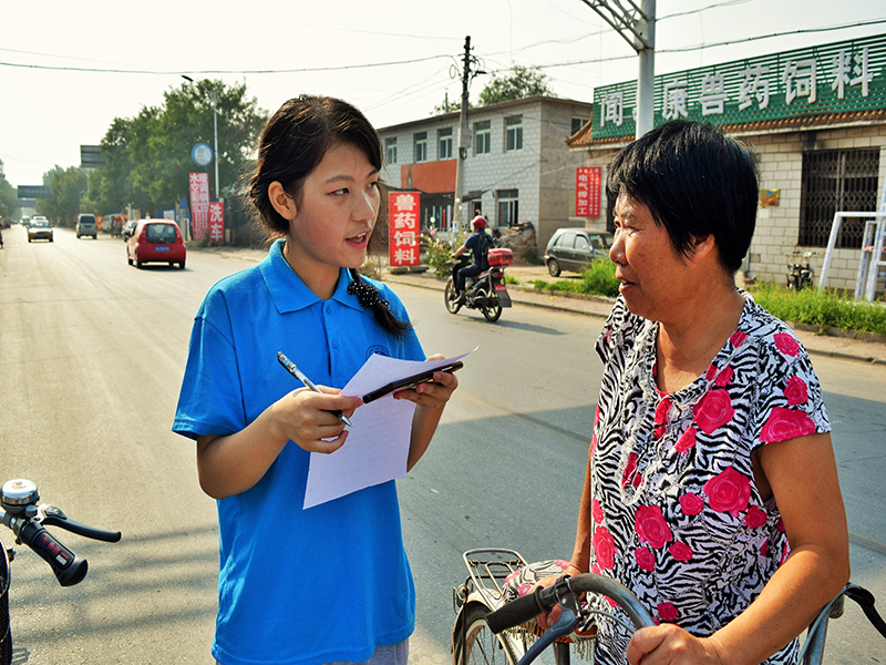 團員們在村間找當?shù)卮迕裢瓿梢话俜荨掇r村醫(yī)療保障制度調查問卷》并圍繞這一問題進行民情采訪。接受問卷調查和采訪的大都是在路邊閑談的老人,他們中的很多人文化水平不高無法識字,又或者年齡較大看不清問卷,面對這一問題,調研組的成員沒有退避,而是耐心的將一個個問題和選項念給村民聽。有些問題的措辭太過于正式以至于村民理解不了,調研組的成員就會用通俗易懂的語言給他們解釋清楚。在采訪過程中,許多村民都向成員講述了在農村醫(yī)療中遇到的問題,并詢問調研組的來處,希望能通過調研反映并解決問題。