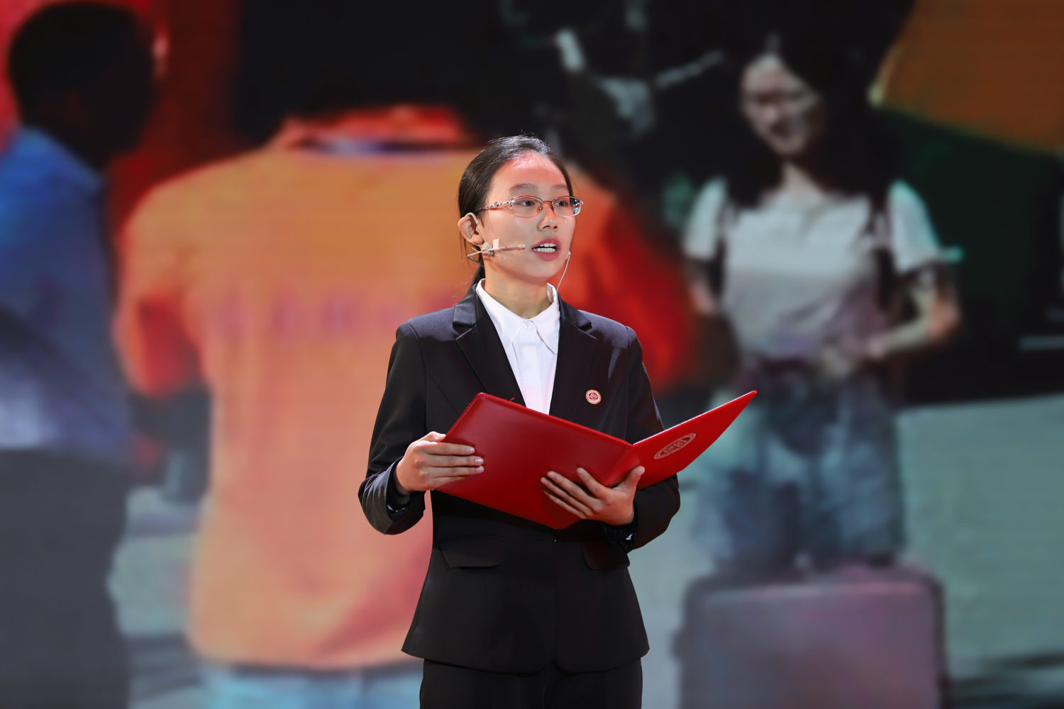 數學與統計學院應統19班許玲玲代表所有國家勵志獎學金獲得者和所有受到資助的同學,向學校和國家表達最誠摯的感謝。作為一名受益于資助政策的學生,她珍視來之不易的學習機會,更是用自己的能量去點燃更多的希望,當選“學生資助宣傳大使”,用自己的故事激勵更多的學子們。她表示,將珍惜眼前的一切,知恩感恩,心向陽光,積極投身鄉村振興新戰場,讓青春在為祖國、為民族、為人民、為人類的不懈奮斗中綻放絢麗之花。