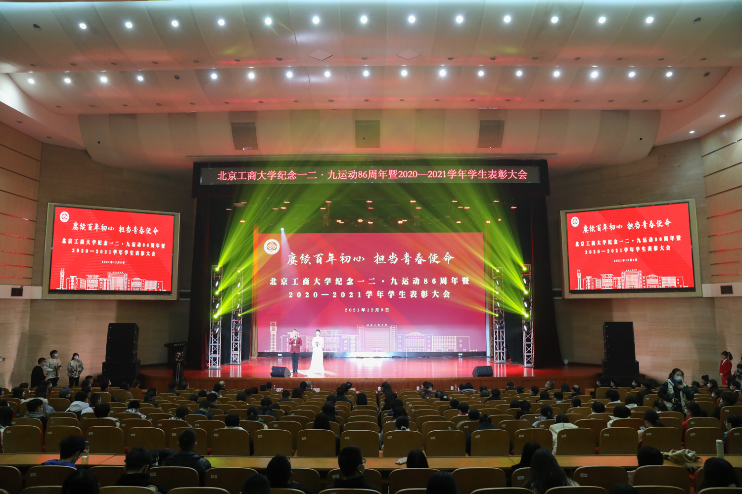 12月9日,北京工商大學“賡續百年初心,擔當青春使命”紀念“一二·九”運動86周年暨2020-2021學年學生表彰大會在良鄉主校區隆重召開。校領導黃先開、孫寶國、王偉、李中奇、歐陽媛、徐丹丹出席活動。相關職能部門負責人、各學院黨政領導、教師代表、獲獎學生代表、兩校區學生代表參加活動。