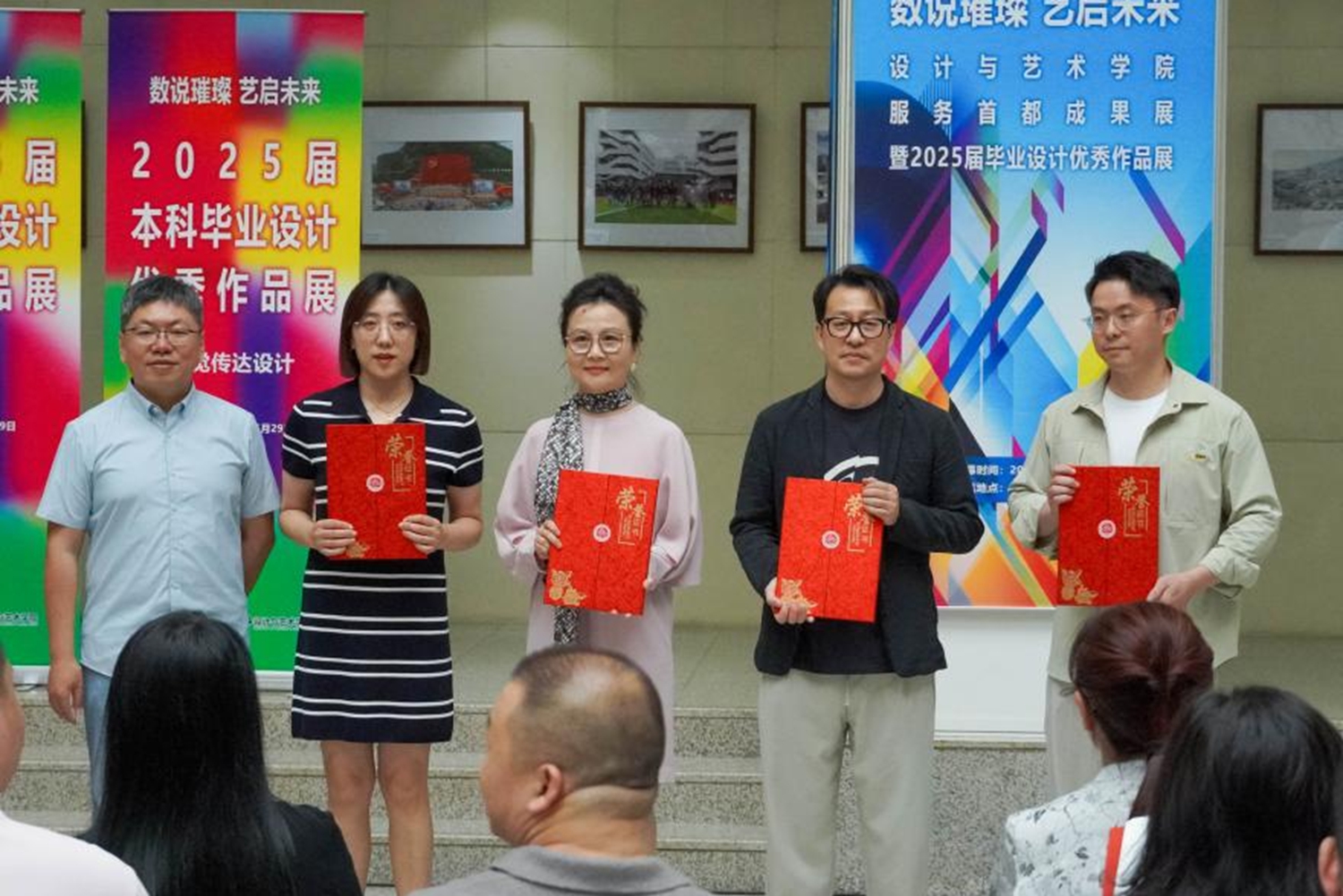 5月29日下午,設(shè)計(jì)與藝術(shù)學(xué)院“數(shù)說(shuō)璀璨·藝啟未來(lái)”服務(wù)首都成果展暨2025屆畢業(yè)設(shè)計(jì)優(yōu)秀作品展在良鄉(xiāng)主校區(qū)藝術(shù)樓B座開(kāi)幕。校黨委副書記宋曉欣、房山區(qū)政協(xié)原副主席趙永祥、中國(guó)工商出版社有限公司新媒體和數(shù)字出版部主任于成龍、北京永樂(lè)頤康文化產(chǎn)業(yè)發(fā)展有限公司總經(jīng)理黃玲海及文化傳媒領(lǐng)域多名企業(yè)家、房山區(qū)攝影家協(xié)會(huì)代表出席活動(dòng)。