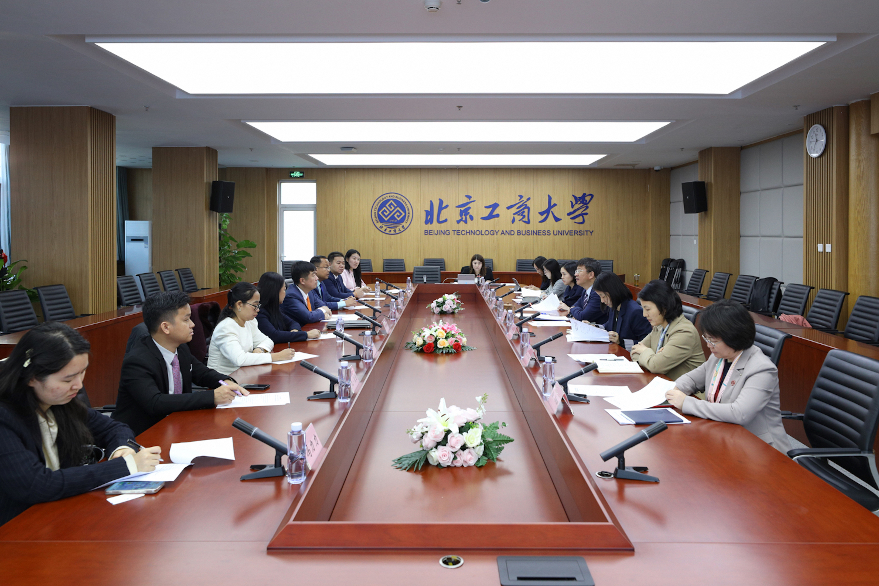 在與柬中友好青年之家和柬埔寨金邊皇家大學的會談中,郭建華對柬中友好青年之家秘書長索比瑟(SOK Piseth)和柬埔寨金邊皇家大學副校長奧姆·拉維(OUM Ravy)一行訪問我校表示歡迎,他回顧了2023年以來我校與柬埔寨高校和科研機構的合作交流情況,并就北工商的發展現狀和未來發展方向進行了介紹。郭建華表示,中柬兩國有著悠久的傳統友誼,雙方堅定不移深化互利合作,堅定不移攜手構建高質量、高水平、高標準的新時代中柬命運共同體。北京工商大學愿意和柬中友好青年之家、柬埔寨金邊皇家大學一道,以“中柬商學院”為平臺,著眼于培養服務兩國經濟發展領域的高層次經營類管理人才,推進中柬兩國在教育領域的深度合作。