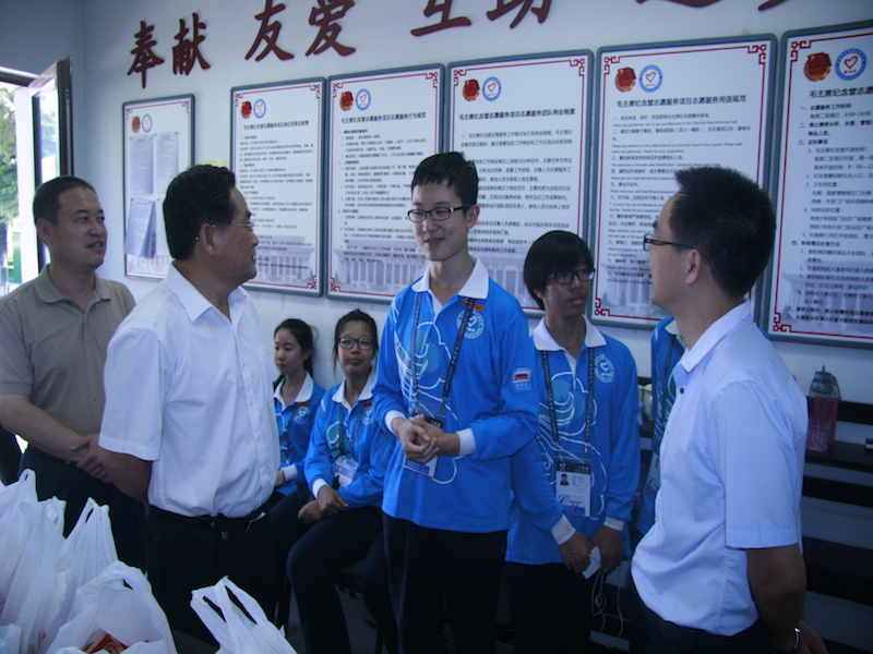 8月4日,我校黨委副書記張德玉一行來到毛主席紀念堂,對多日來奮戰(zhàn)在毛主席紀念堂志愿服務(wù)崗位的志愿者們進行慰問,并參加了在紀念堂舉行的主題黨團活動。