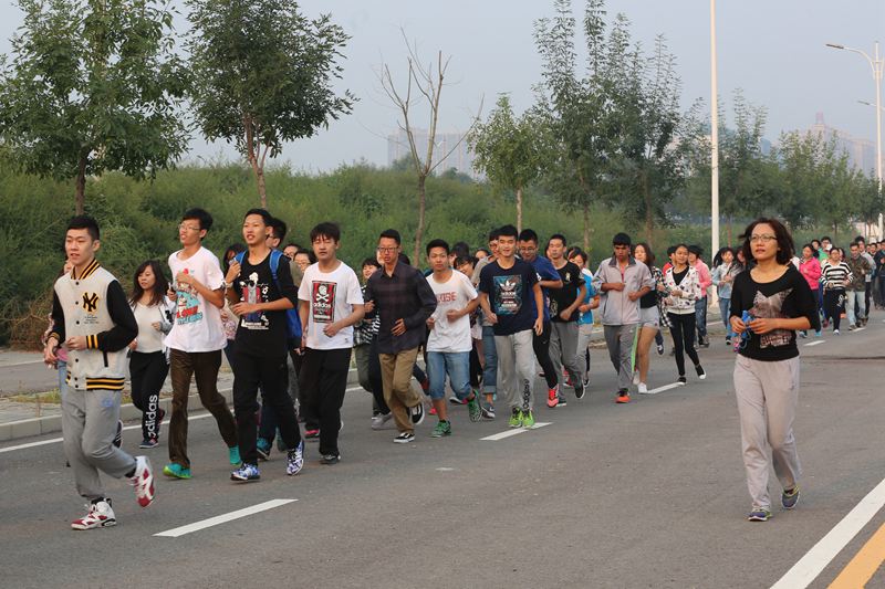 “迎接朝陽(yáng),奔向夢(mèng)想,書(shū)聲瑯瑯,生命綻放”、“晨練為成功助力,晨讀為夢(mèng)想起航”……行政樓、文科實(shí)踐中心、籃球場(chǎng)、圖書(shū)館等周邊懸掛著的條幅,為同學(xué)們鼓勁加油。在輔導(dǎo)員老師和高年級(jí)學(xué)長(zhǎng)的組織下,新同學(xué)們整齊有序,開(kāi)始了豐富多樣的晨練活動(dòng)。跑步作為一項(xiàng)簡(jiǎn)單易行的傳統(tǒng)項(xiàng)目,成為各個(gè)學(xué)院學(xué)生們的首選。同學(xué)們排著整齊的隊(duì)伍,喊著嘹亮的口號(hào),精神抖擻,熱情高漲。籃球、羽毛球、熱力操、花樣跳繩、毽子、兩人夾球、四人五足、投沙包、小足球等項(xiàng)目,充滿樂(lè)趣,充分調(diào)動(dòng)了同學(xué)們參與的熱情和積極性。一些學(xué)院的黨總支副書(shū)記和輔導(dǎo)員們,則身著運(yùn)動(dòng)服和運(yùn)動(dòng)鞋,參與其中,帶頭領(lǐng)跑,和同學(xué)們一起開(kāi)展鍛煉。