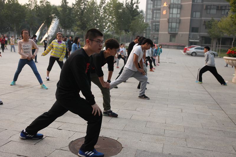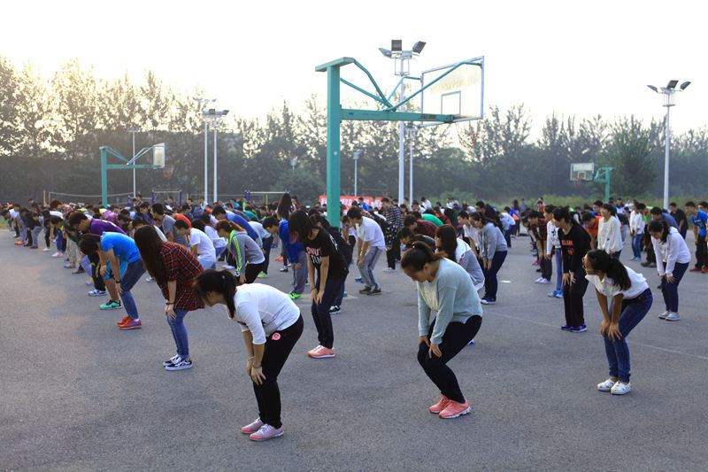 9月16日早6:30,學(xué)校良鄉(xiāng)校區(qū)學(xué)生宿舍打破了往日的寧?kù)o,同學(xué)們?nèi)宄扇骸⒄勑︼L(fēng)生,紛紛前往籃球場(chǎng)、學(xué)生活動(dòng)中心、圖書(shū)館等地點(diǎn)集合。6:50,近3000名2015級(jí)新同學(xué)以學(xué)院為單位,正式開(kāi)始了第一天的晨讀晨練活動(dòng)。