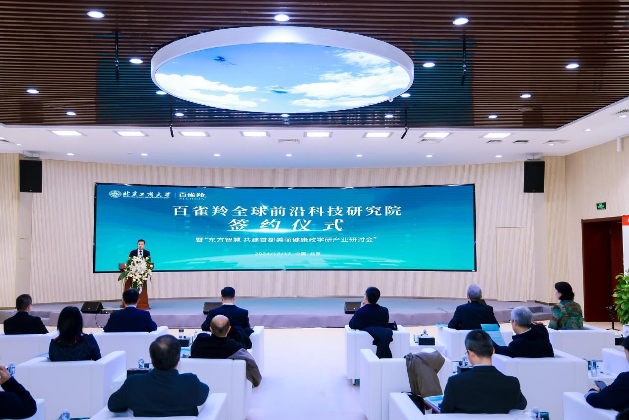 12月17日,學校舉行百雀羚全球前沿科技研究院簽約儀式暨“東方智慧 共建首都美麗健康政學研產業研討會”。