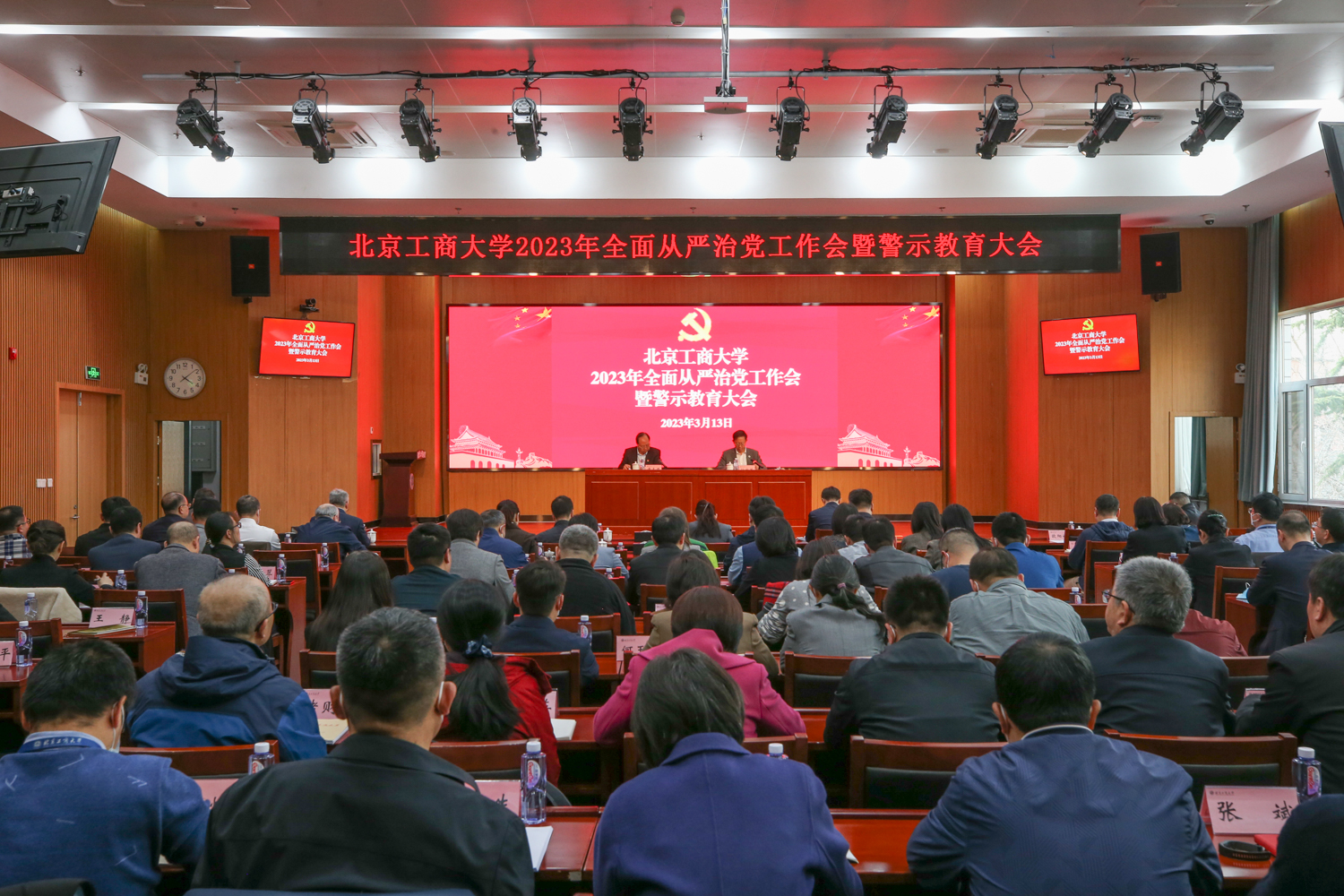 3月13日,學校在阜成路校區召開2023年全面從嚴治黨工作會暨警示教育大會。全體校領導、中層干部、基層黨組織紀檢委員、重點崗位科室負責人、管理七級崗位人員參加會議。大會設主會場和三個分會場。會議由黨委副書記、校長孫寶國主持。