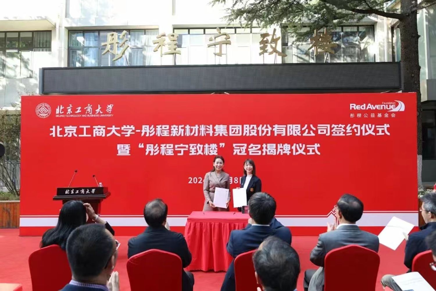 10月8日,北京工商大學-彤程新材料集團股份有限公司簽約儀式暨“彤程寧致樓”冠名揭牌儀式在阜成路校區舉行。黨委書記黃先開,黨委副書記、校長郭建華,中國工程院院士、教授孫寶國,黨委常委、副校長、教育基金會理事長徐丹丹,黨委常委、副校長毛新述,93化工專業校友、彤程新材料集團股份有限公司董事長張寧等出席儀式。儀式由徐丹丹主持。