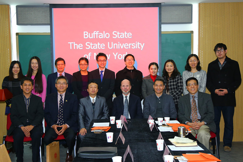 美國紐約州立大學(xué)布法羅分校自然與人文學(xué)院院長馬克.塞文森博士(Mark Severon Dr.)、中國中心主任張杰教授、數(shù)學(xué)系主任許洪良教授、藝術(shù)系蔣臨夏教授等6人與藝傳學(xué)院院長羅子明、學(xué)院黨委書記林剛、副書記劉晶、副院長鄭子云、國際處副處長賀冬萌、藝傳學(xué)院教師代表孫進(jìn)、劉莉、盛鋮等參加了此次會談。