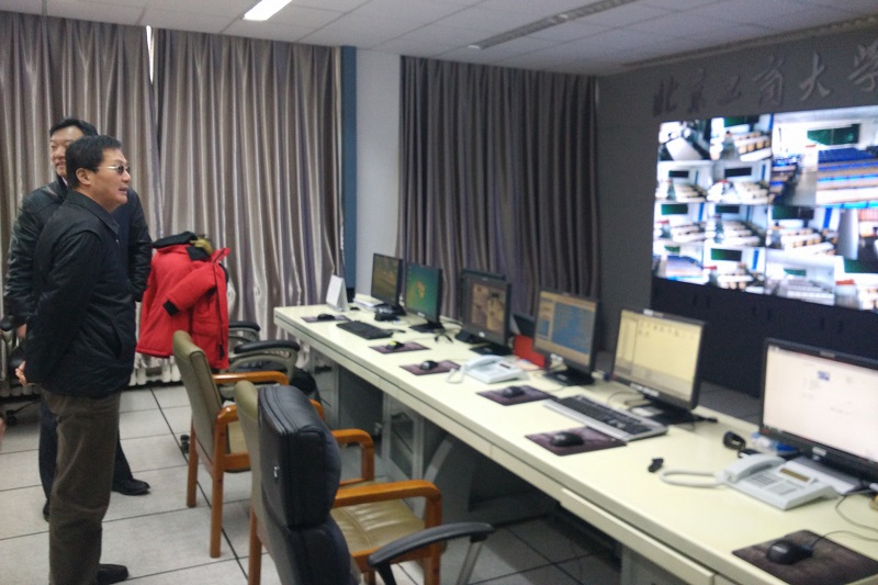 李朝鮮副校長首先來到教三樓教室,現場查看了衛生和教學設備運行情況。隨后一行人來到教一樓多媒體總控室。在總控室顯示器幕墻上,各教室情況一覽無余,最大限度地提高了管理效率。在聽取了各部門相關工作情況匯報后,他對后勤管理處和網絡中心新學期開學服務保障工作給予了充分肯定,并提出了要求:堅持做好后勤服務各環節的精細化管理工作,及時維護好教學設備,維護好干凈整潔的教室環境和美麗校園,不斷提升師生對教學服務的滿意度。