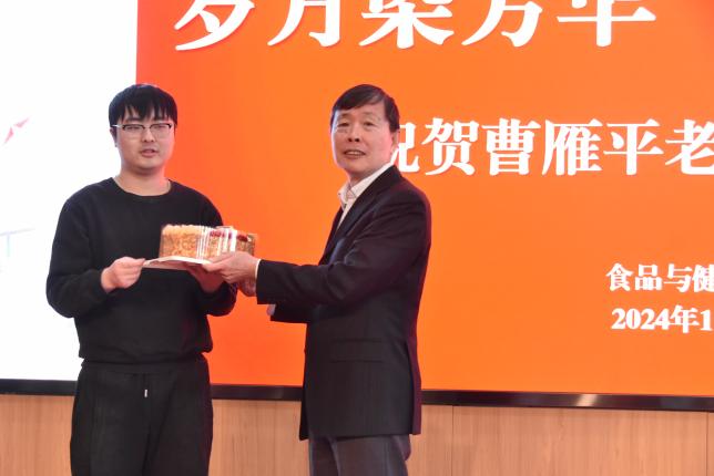 院長王彥波代表學院全體師生向曹老師表達最衷心的感謝和最誠摯的祝福。他表示,曹老師親歷和見證了食品學科的發展歷程,在教學、科研、學科等各項事業中發揮了至關重要的作用,希望曹老師持續關注學院發展,常回“家”看看,繼續發揮自己的優勢,續寫新的華章。