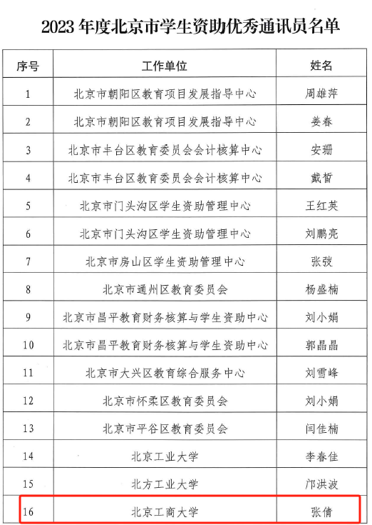 在北京市學(xué)生資助事務(wù)管理中心開(kāi)展的2023年度學(xué)生資助工作優(yōu)秀宣傳工作單位和優(yōu)秀通訊員評(píng)選中,我校獲優(yōu)秀宣傳工作單位,學(xué)生處資助中心張倩獲優(yōu)秀通訊員。