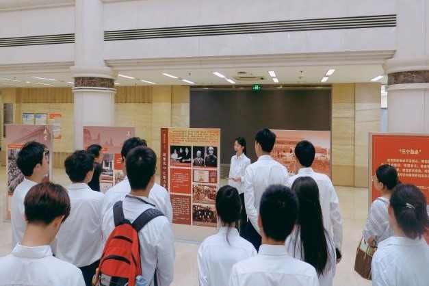 入團儀式后,全體師生前往圖書館參觀“‘京’彩文化 青春綻放”行動計劃紅色行專題,“永葆青春活力——香山時期中國共產黨自我革命實踐”黨紀學習教育專題展覽。校團委“青春宣講團”成員董奕悅、韋懿珈、許睿寧、楊燦、杜佳依為現場師生進行了詳細講解。