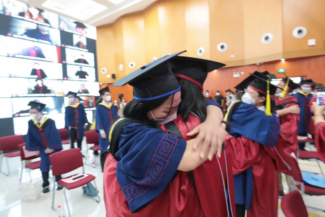 典禮現場氣氛熱烈感人,現場畢業生代表與各自的導師,熱情相擁、含淚告別。親愛的2022屆畢業生們,愿在未來拼搏歲月里熠熠生輝,歷盡千帆捷報頻傳,我們在北工商等你凱旋!