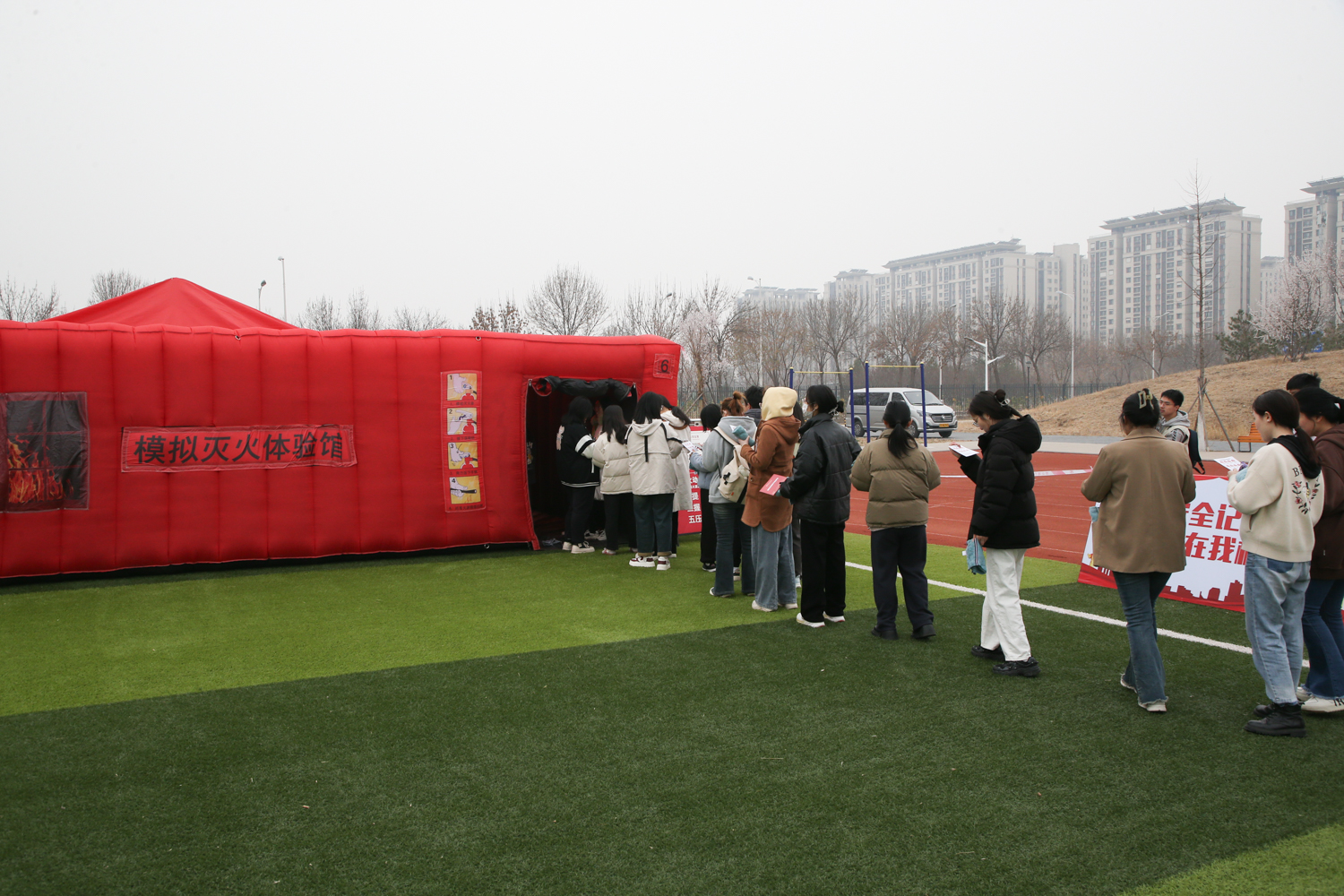 為增強參演師生的體驗感,進一步掌握安全自救的相關技能,在疏散演習結束后,保衛處組織開展了消防安全嘉年華活動。活動現場設置了“模擬滅火體驗、煙霧逃生體驗、消防安全隱患排查演練、疏散逃生防踩踏演練、消防栓模擬操作、電動車模擬著火冒煙試驗、心肺復蘇體驗和海姆立克急救體驗”等8個體驗科目,由第三方專業公司組織實施。因與實踐結合緊密,實操性強,活動受到廣大師生的歡迎和好評。