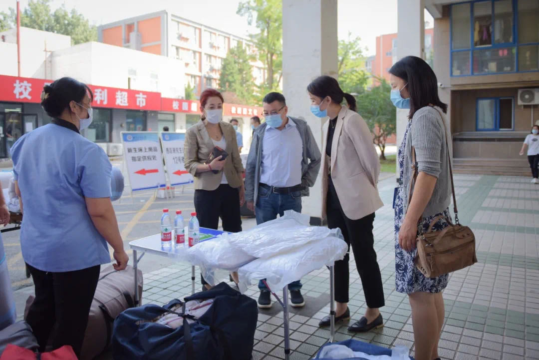 各學院也為迎接研究生新生入學做足了準備。數學與統計學院領導及輔導員走進新生宿舍,了解新生們的入住情況,及時解決學生們遇到的問題。食品與健康學院在報到前兩天召開線上會議,帶領新生線上熟悉報到路線和校園環境。輕工科學技術學院為研究生新生準備了“開學盲盒”,其中包含理想信念、生涯規劃、心理輔導等類別圖書,讓新生感受到學院對學生的關愛和鼓舞。化學與材料工程學院繼續夯實專業元素迎新的理念,迎新展板選取元素周期表中的He, H, At, Tc, Zn, As(氦氫砹锝鋅砷)六個元素,諧音譯為“嗨,親愛的新生!”。生態環境學院為同學們留下研究生的第一張照片,在以環保科普為主題的明信片里,新生們寫下自己對未來研究生學習生活的美好祝愿和承諾。人工智能學院前期進行精心準備和安排,報到流程得到極大優化,保證報到手續在2分鐘內辦理完畢。計算機學院領導與輔導員一同到學生宿舍看望新生,詢問并解答學生疑問,幫助學生解答了設備報修、晾衣服等生活問題。經濟學院準備了文件袋,將學生所需資料分裝,給同學們帶來了最大的便利和“回家”的感覺。商學院設置了迎新微信群,7月就開始解答萌新們各種問題,在群里組織了新生花樣打卡活動。國際經管學院在線下對學生志愿者進行了培訓,力求提高迎新質量,展現國經管奮進精神。電商與物流學院設定了接待組、行李托運組、報到錄入組,迎新志愿者到場后快速進入狀態,保障迎新工作有序進行。法學院準備了獨具特色的展示板、標牌、吉祥物歡迎著新同學的到來;還貼心地準備了迎新物資和開學禮包,為新生提供最周到的服務。馬克思主義學院在報到點、辦公樓、會議室布置了濃濃情懷的標牌,給每個新生拍照采訪,制作公眾號特輯。外國語學院為每一位新生送上精心設計的學院標識口罩,以獨具匠心的方式歡迎新生。傳媒與設計學院為新生們準備了精美的手持板,供新生們合影留念,記錄下初入校園的青澀面龐。