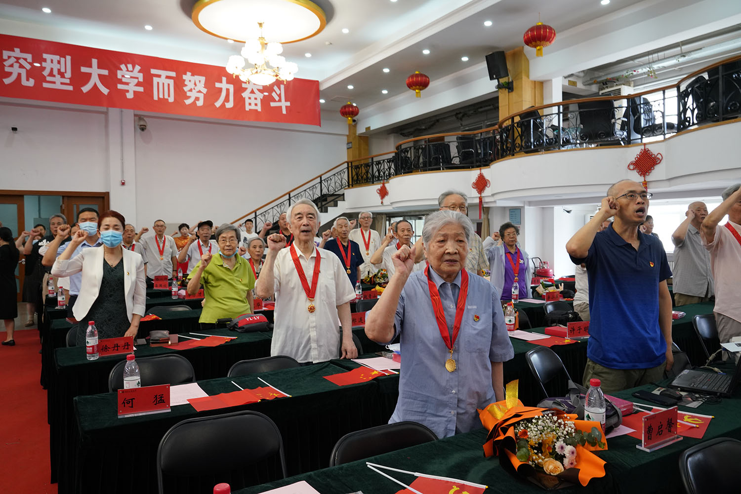黃先開代表學校黨委向獲得“光榮在黨50年”紀念章的老黨員表示祝賀,向所有離退休老黨員表示誠摯的問候。黃先開表示,今年黨中央決定為黨齡50年以上的老黨員頒授紀念章,在中國共產黨的歷史上是第一次,體現了黨對老黨員的深切關懷和高度肯定,同時教育引導年輕黨員干部對標老黨員們崇高的境界和務實的作風,賡續光榮傳統,傳承精神譜系。