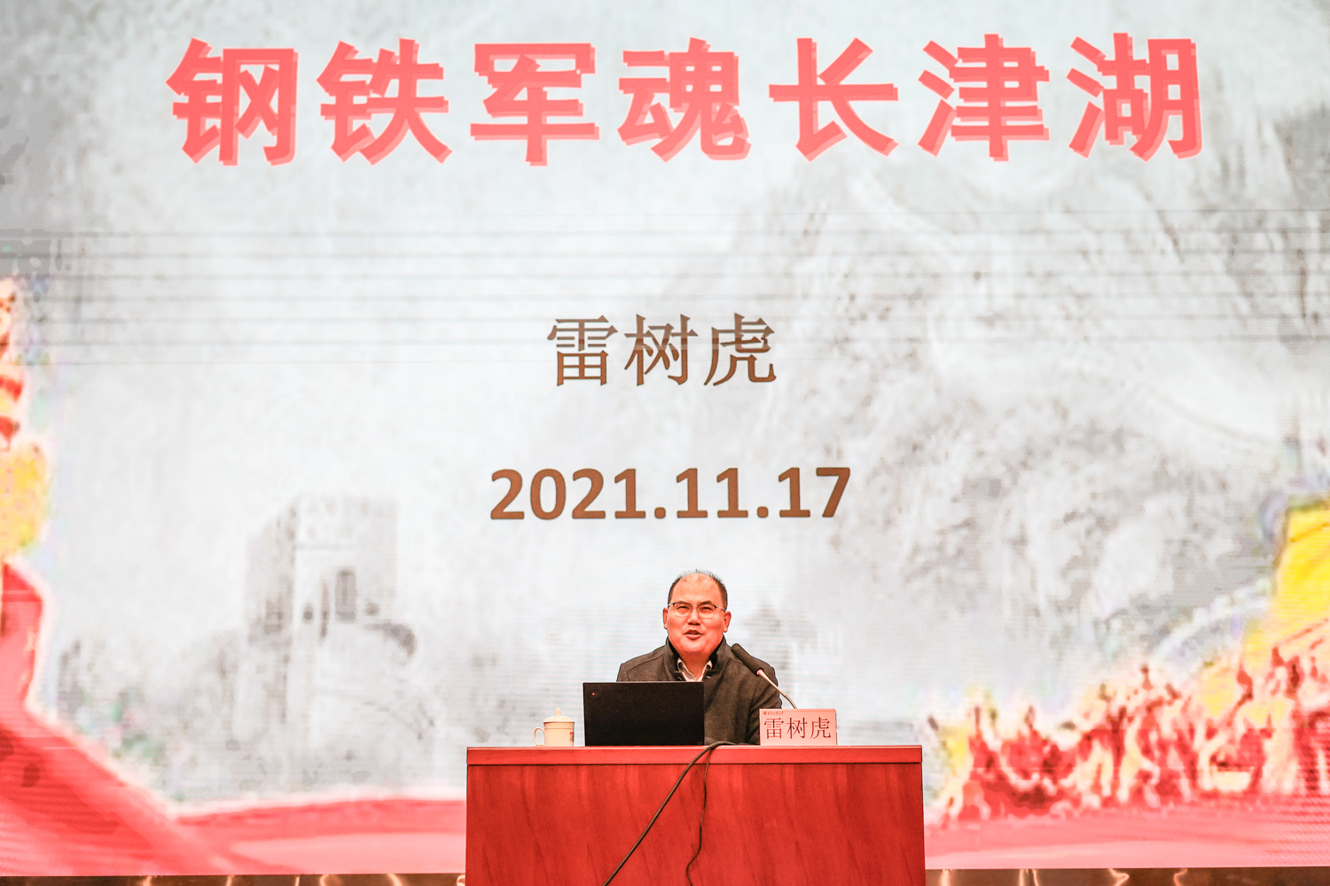 11月16日,北京新四軍研究會副會長、北京鐵軍文化傳播中心秘書長胡繼軍以“建黨百年鑄輝煌,共產(chǎn)黨員是棟梁”為題,從共產(chǎn)黨人的初心使命講起,講述了新四軍軍長葉挺將軍以及胡繼軍的父親、母親、岳父三位新四軍戰(zhàn)士在戰(zhàn)爭年代堅定信念跟黨走、英勇作戰(zhàn)、不怕犧牲、無私奉獻(xiàn)的故事,謳歌了中國共產(chǎn)黨黨員和人民軍隊堅定的理想信念、崇高的思想境界和優(yōu)秀的道德品質(zhì)。