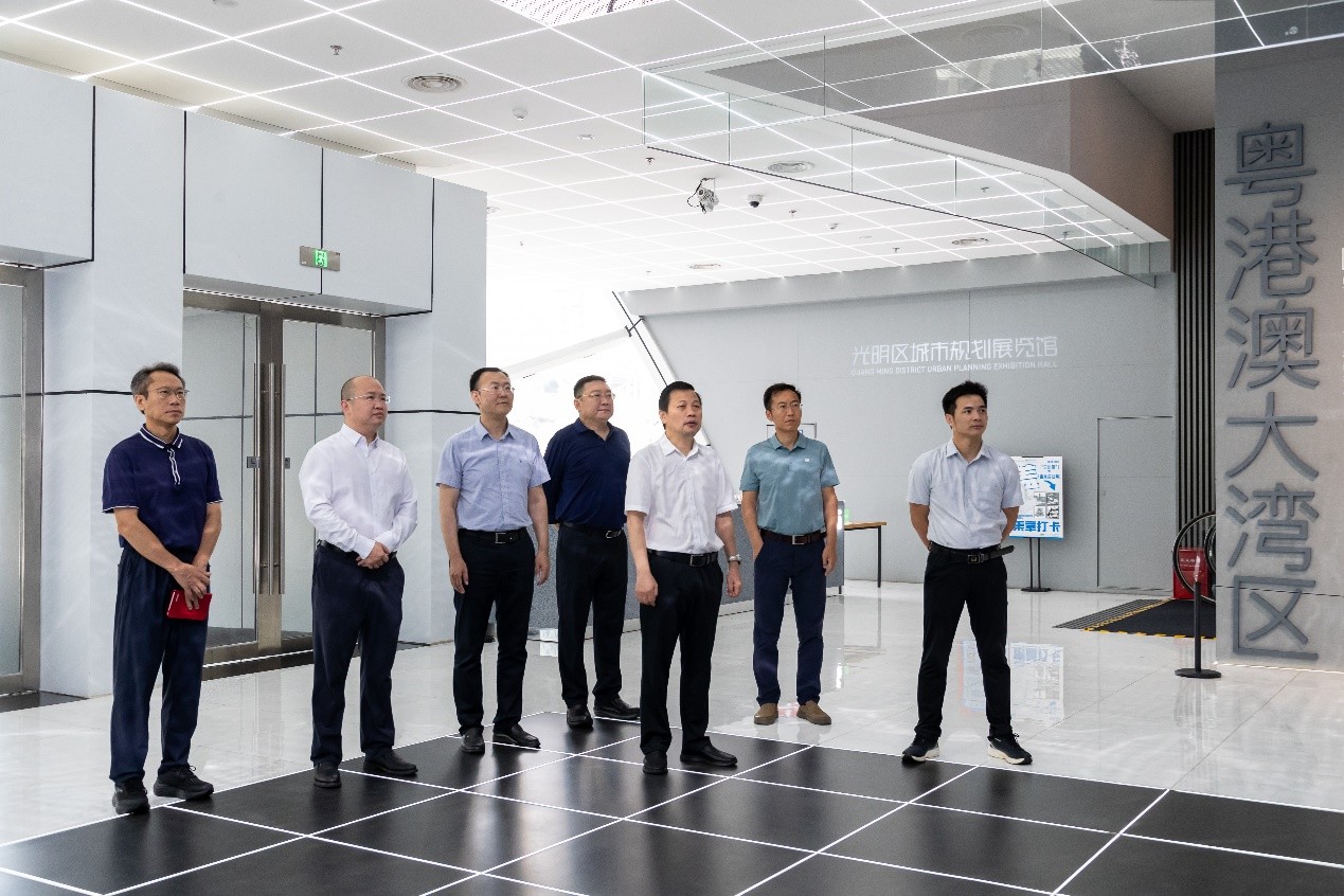 簽約前,寇紅江一行參觀了光明區城市規劃展覽館、光明生命科學園,深入調研光明科學城建設規劃、產業與科研導向、科學裝置與科研平臺布局、科技成果轉化和產學研體系建設等情況。
