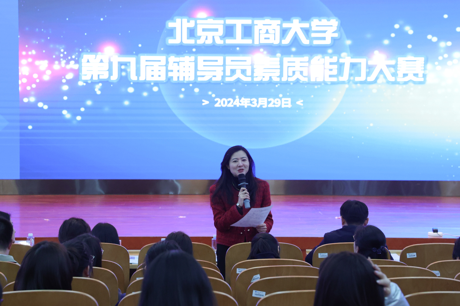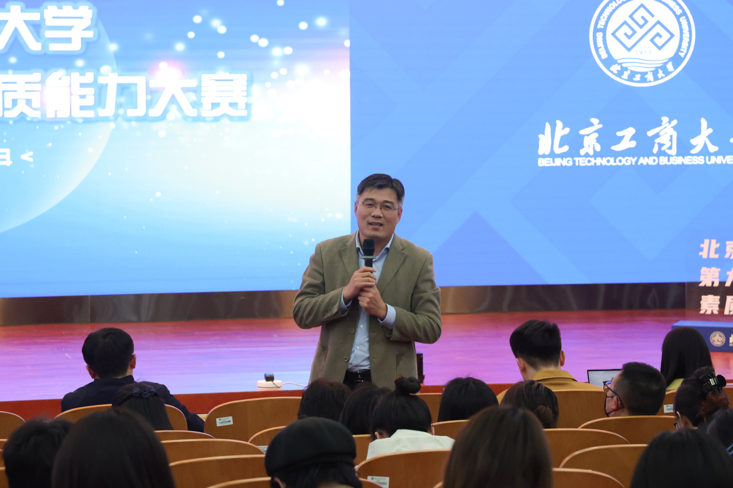 3月29日,在良鄉(xiāng)主校區(qū)舉行北京工商大學(xué)第九屆輔導(dǎo)員素質(zhì)能力大賽。首都師范大學(xué)團委書記王洵,北方工業(yè)大學(xué)馬克思主義學(xué)院黨委書記張茂林,北京理工大學(xué)學(xué)生工作部副部長茍曼莉,北京石油化工學(xué)院團委副書記王鑫,學(xué)校黨委學(xué)生工作部、研究生工作部、團委負責(zé)人擔(dān)任大賽評委,各學(xué)院黨委副書記及輔導(dǎo)員觀摩了比賽。