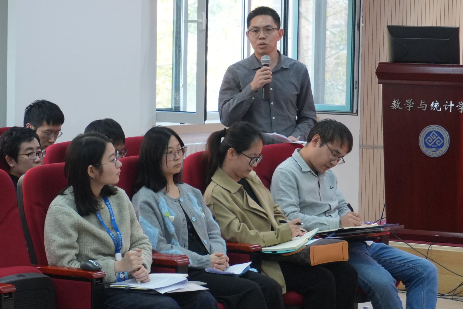 數學與統計學院副院長王康以“錨定一流學科,突出交叉特色,明晰戰略定位”為主題,圍繞學科布局、人才培養、研究梯隊和科研發展四個方面進行專題匯報。應用統計系主任謝峰、數據科學系主任岳美玲、經濟統計系主任趙江分別就各系的基本情況、研究方向和未來規劃進行了匯報交流。