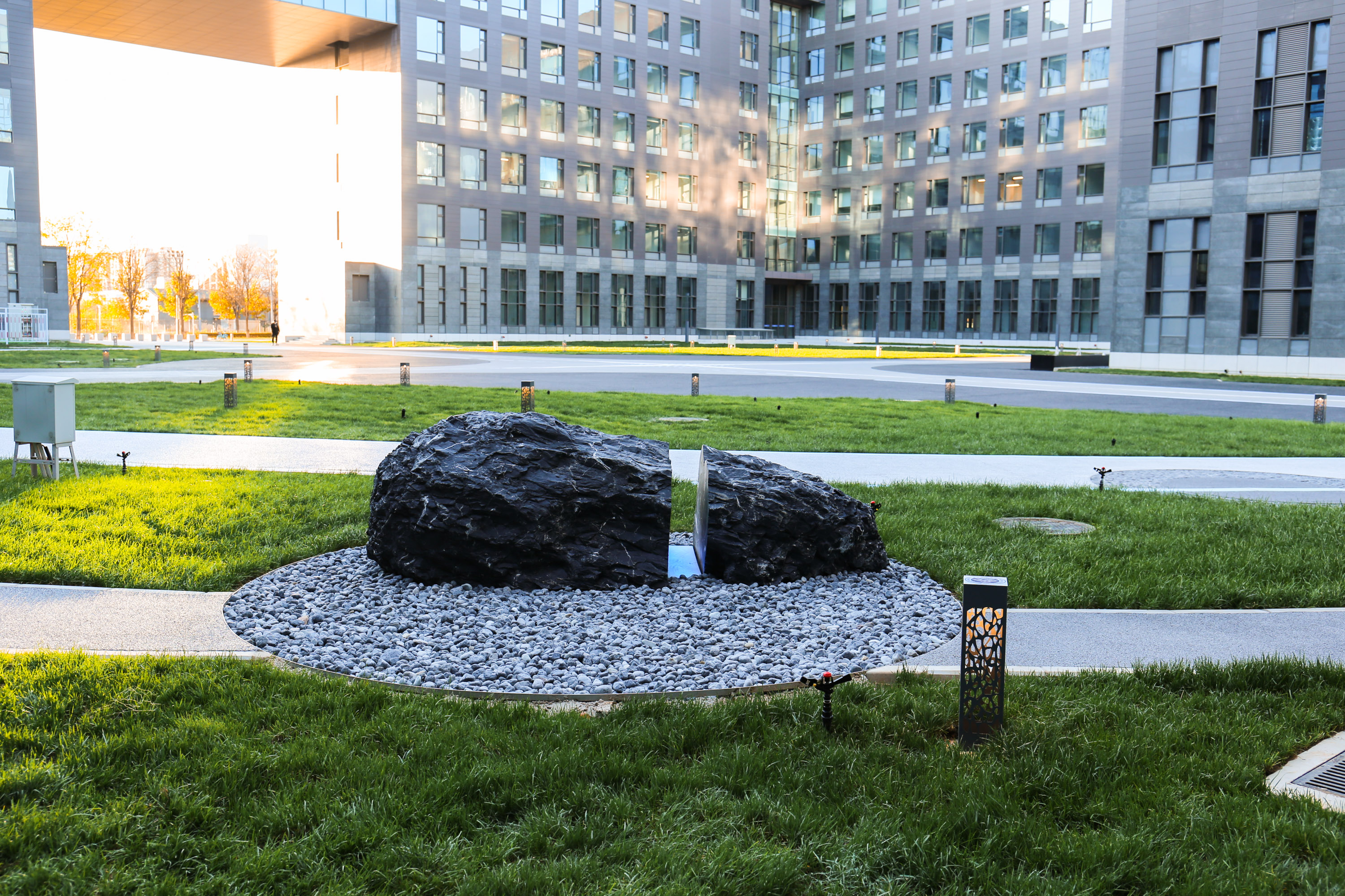 大樓的設(shè)計理念是方圓相濟(jì)、和諧共生。方,是一種做人的原則;圓,是一種處世的智慧。利用理念及傳統(tǒng)造園哲學(xué)相結(jié)合,創(chuàng)造親切而富有美感的觀賞和體驗(yàn)空間。既是對傳統(tǒng)景觀的當(dāng)代解讀,整體為外方內(nèi)圓的形式設(shè)計,又通過圍合空間的建立和運(yùn)用小中見大的景觀手法以及填挖方的工程技術(shù)將整體和諧統(tǒng)一。