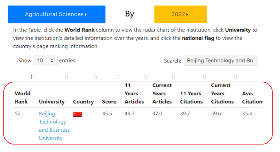 近日發布的2023年NTU世界大學排名中,我校以食品為主要支撐的農業科學領域世界大學排名由2022年的第52位上升為2023年的第47位,取得了突破,這標志著該領域的建設取得了顯著的實績,學術水平和學術影響力持續提升。