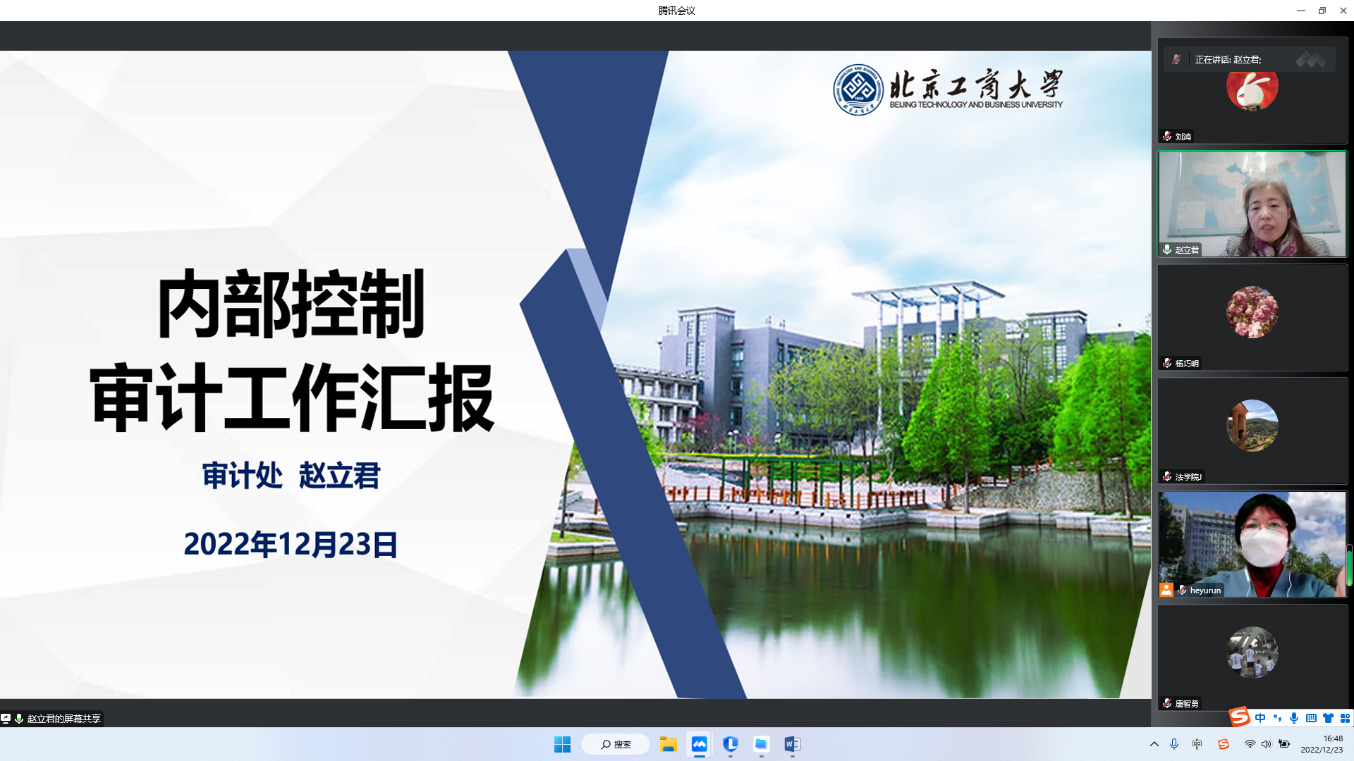 結合我校2022年內部控制建設工作中存在問題,計劃財務處處長何玉潤、國有資產管理處處長康智勇和審計處處長趙立君分別進行了工作匯報。何玉潤圍繞學校全面預算管理中預算目標設立、預算編制及項目入庫、預算執行、績效評價四個環節中存在的問題進行了重點闡述并提出了相關工作建議,介紹了學校2023年即將上線的預算一體化管理平臺的功能;康智勇重點剖析了在項目申報、資產配置、資產驗收、固定資產賠償,大型儀器設備開放共享等工作中存在的問題,以及實驗室的安全管理中存在的風險,提出了工作建議;趙立君重點對學校審計發現的內部控制問題和相關風險事項進行了說明,并結合市教委的要求、學校發展的需要和具體情況,提出了相關工作建議。