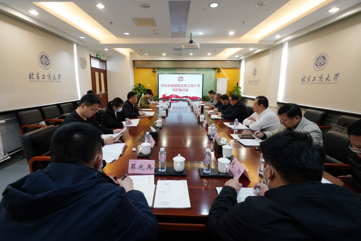 左敏代表學校對林毅、孫輝一行來訪表示熱烈歡迎,結合學校宣傳片,進一步介紹了學校的歷史沿革、辦學特色、學科建設、科學研究等情況。他表示,北京工商大學作為北京市重點建設的高水平研究型大學,始終堅持立足北京,服務京津冀協同發展。學校將充分發揮學科特色,積極匯聚優勢資源,深入推進與威縣在食品產業、鄉村旅游、教育教學、電商物流供應鏈等領的溝通交流、對接合作,在威縣建設中貢獻北工商力量,在鄉村振興中展現更大作為。