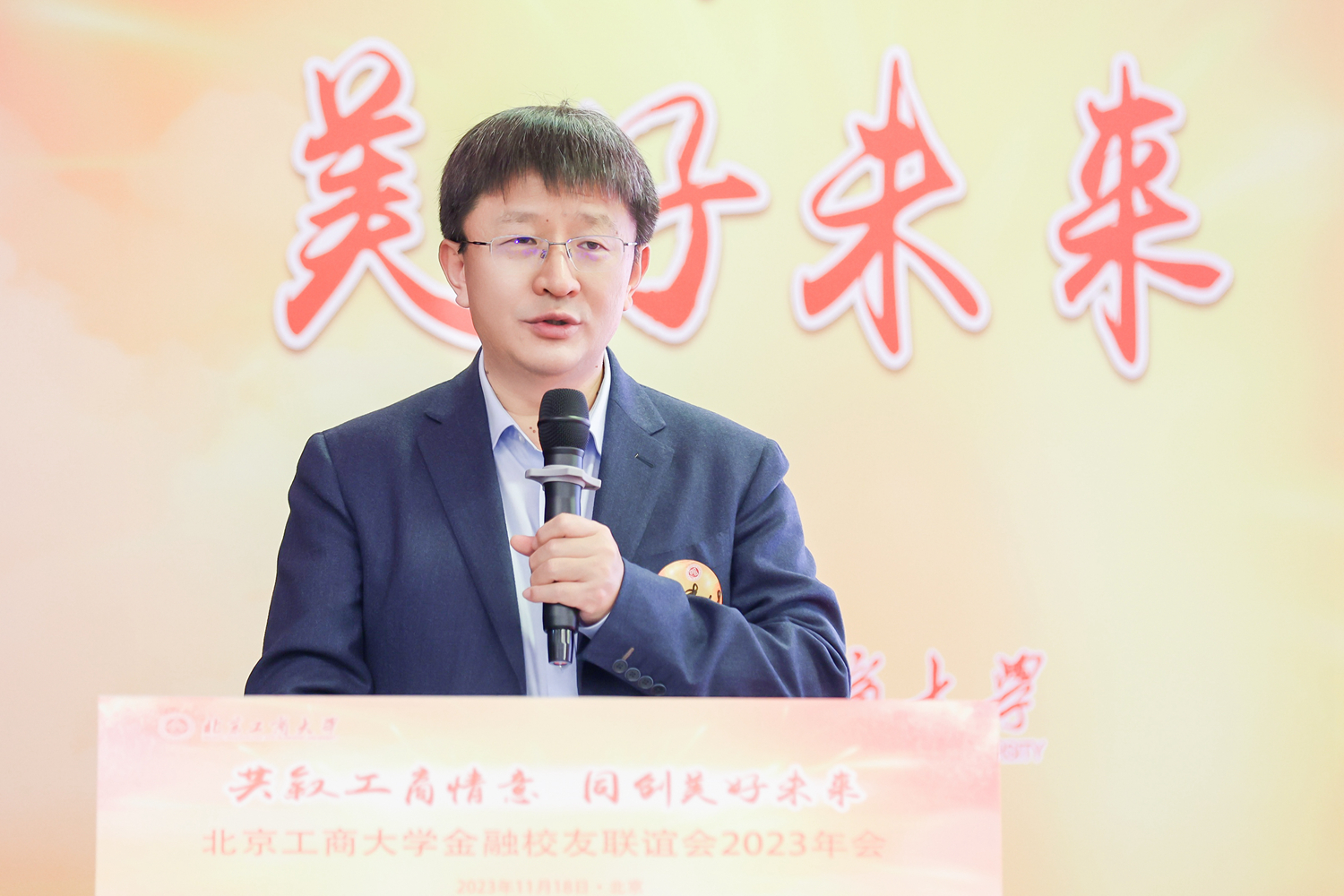 郭建華代表學(xué)校向年會的召開表示熱烈的祝賀,向長期以來關(guān)心、支持學(xué)校發(fā)展建設(shè)的各界校友表示誠摯的感謝。他談到,金融校友聯(lián)誼會自2016年成立以來,匯聚學(xué)校金融與投資相關(guān)領(lǐng)域校友,在團結(jié)校友、搭建平臺、整合資源、促進合作等方面發(fā)揮了積極的作用。不少校友百忙之中回到學(xué)校,參加學(xué)術(shù)論壇、就業(yè)指導(dǎo)、企業(yè)招聘、助學(xué)捐贈、課程建設(shè)等活動,為學(xué)校的發(fā)展建設(shè)出謀劃策、提供助力。當前,學(xué)校正在緊緊圍繞建設(shè)特色鮮明的高水平研究型大學(xué)這一主線,全面落實良鄉(xiāng)主校區(qū)和阜成路校區(qū)兩校區(qū)發(fā)展規(guī)劃,加快推進轉(zhuǎn)型發(fā)展和學(xué)部改革,歡迎并期待校友們積極參與到學(xué)校的各項發(fā)展建設(shè)中來,學(xué)校也將著力為校友們的個人事業(yè)發(fā)展提供更加堅強有力的服務(wù)與支持。他表示,學(xué)校高度重視金融校友聯(lián)誼會的發(fā)展,期待在新一屆理事會的領(lǐng)導(dǎo)下,在學(xué)校校友會的支持下,金融校友聯(lián)誼會繼續(xù)搭建校友聯(lián)絡(luò)感情、共享資源的平臺,創(chuàng)新校友深度交流、蓄力提升的方式,培養(yǎng)校友情系母校、報效國家的理念,發(fā)揮行業(yè)集聚人才、貢獻智慧的作用,走出一條建設(shè)一流行業(yè)校友會的新路,為中國式現(xiàn)代化建設(shè)提供北工商方案,貢獻北工商力量。