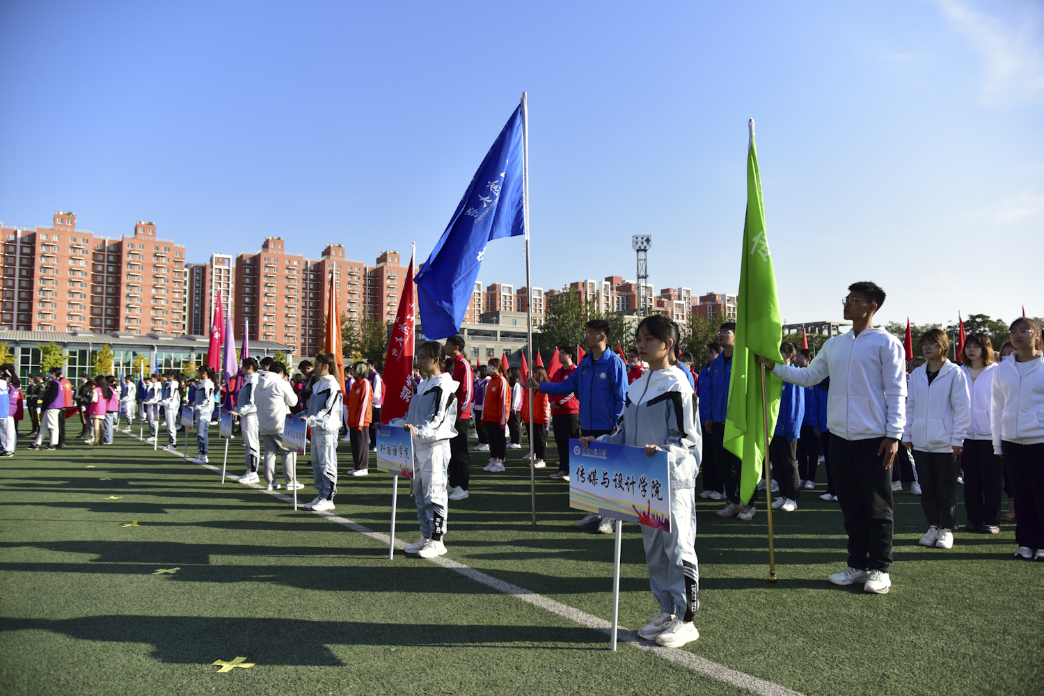 各學院各色旗幟和精心準備的橫幅將柏林藍操場裝扮一新。伴隨著運動員進行曲,學院方陣、國旗護衛隊以飽滿的熱情步入運動場。整齊的方陣彰顯著青春朝氣;國旗護衛隊步伐鏗鏘、英姿颯爽;運動員們熱情洋溢,自信昂揚;看臺上,觀眾井然有序,歡呼聲響徹會場。體育與藝術教學部、學生處、公共事務處、保衛處、校團委、黨委宣傳部等相關部門工作人員也已就位,為比賽的順利進行保駕護航。