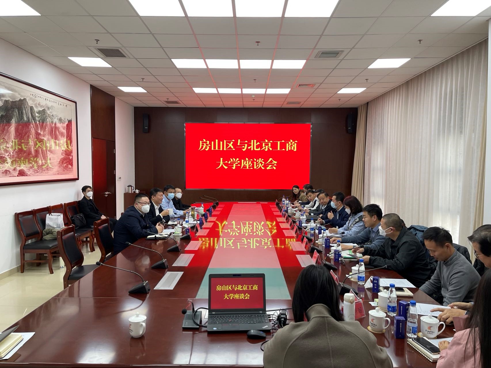 尹航代表房山區歡迎劉敏華、王海平一行。在觀看房山區《云瞰房山》宣傳片后,尹航簡要介紹了房山區的區域資源優勢、經濟社會發展情況及未來發展構想,希望通過此次座談會,持續深化與北京工商大學的屬地合作,為國家鄉村振興建設,房山區農業農村發展出謀劃策,舔磚加瓦。