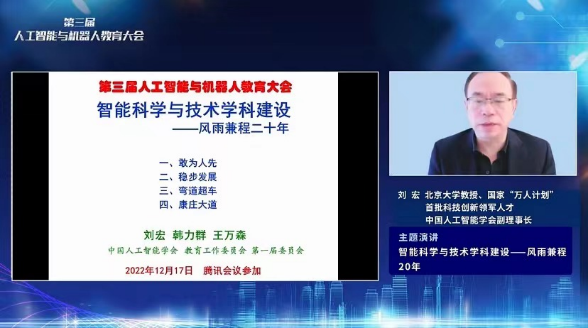 12月17日,由中國教育發展戰略學會人工智能與機器人教育專業委員會主辦,我校人工智能學院與中關村互聯網教育創新中心聯合承辦的“第三屆人工智能與機器人教育大會”在線上舉辦。大會邀請了人工智能與機器人教育行業相關的政府部門及行業組織領導、專家學者、大中小學教師、企業家、行業媒體等社會各界人士,共謀人工智能與機器人教育改革路徑,群策群力推動人工智能產業提升與人才培養模式的創新發展。搜狐教育對本次大會進行了全程直播,累計近30萬人觀看了本次大會的精彩報告。我校黨委常委、副校長劉敏華出席會議并致辭,人工智能學院師生近300人參加了此次會議。