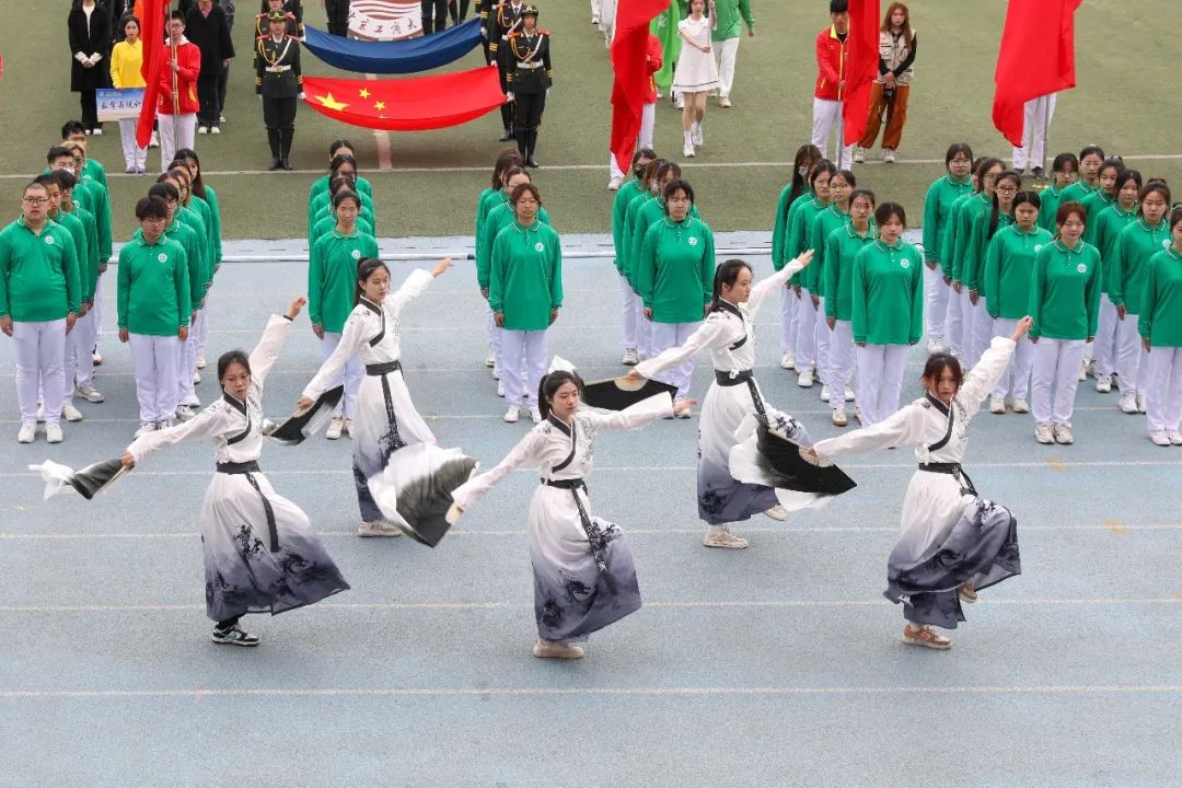 1000余名教職工帶來八段錦表演,教職工們身著綠色上衣,昂首挺胸、整齊劃一,展現了學校教職工奮進新征程的昂揚姿態。