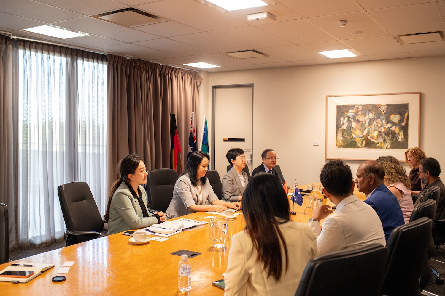 在迪肯大學訪問期間,代表團與該校信息技術學院和商學院的項目負責人進行會談,雙方圍繞國際聯合科研、教師互訪和高層次人才交流等內容進行了會談,同時雙方圍繞2026年中國國際人才交流大會等內容確定了工作計劃,并就我校海外優秀青年人才引進的相關政策進行了介紹和交流,為雙方在已有合作基礎上拓寬合作項目內容、夯實合作基礎注入新動力。