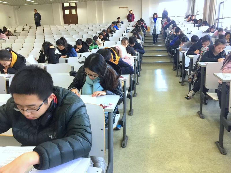 考試期間,考場各項考務工作有條不紊地進行。全體監考、巡考老師做到嚴格要求、規范操作,醫務人員也隨時待命??忌鷤儑栏褡袷乜紙鲆巹t,沉著冷靜,認真作答,考場紀律嚴肅,考試秩序良好??荚嚱Y束后,教務處工作人員將試卷、答題卡及相關材料安全送達北京市教育考試院,完成了本次全國大學英語四、六級考試工作。
