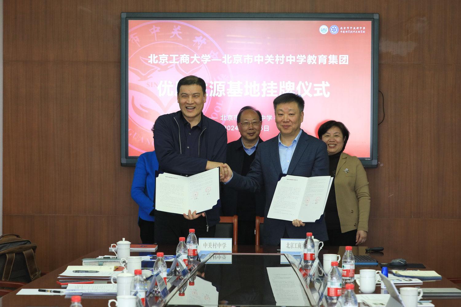 隨后,我校與中關村中學及知春分校分別簽署《優質生源基地合作協議》,并舉行了“優質生源基地”授牌儀式。