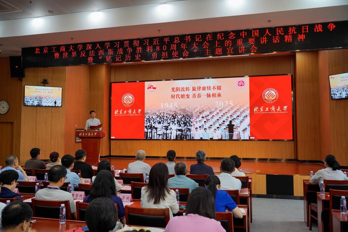 隨后,全體師生共同觀看了《銘記歷史 勇擔使命》北京工商大學紀念中國人民抗日戰爭暨世界反法西斯戰爭勝利80周年專項活動紀錄片,這部專題片,不僅是國家盛典的縮影,更是北工商師生參與其中所展現出的責任擔當與青春風采,為全體師生上了一堂深刻的愛國主義思政課。