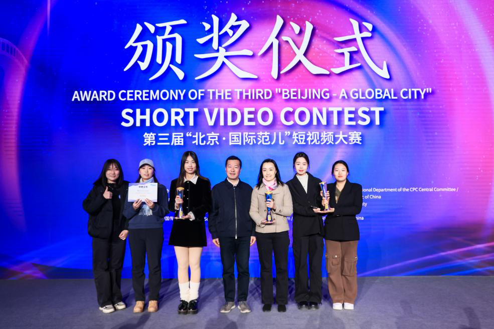 12月18日晚,由北京市人民政府外事辦公室主辦、中央廣播電視總臺(tái)國際在線承辦的第三屆“北京·國際范兒”短視頻大賽頒獎(jiǎng)儀式在京舉辦。我校學(xué)生獲得2項(xiàng)二等獎(jiǎng)、1項(xiàng)三等獎(jiǎng)、4項(xiàng)優(yōu)秀獎(jiǎng),語言與傳播學(xué)院獲得大賽組織獎(jiǎng)。我校黨委常委、副校長(zhǎng)劉敏華教授蒞臨現(xiàn)場(chǎng),并為獲獎(jiǎng)?wù)邆冞M(jìn)行頒獎(jiǎng)。我校語言與傳播學(xué)院院長(zhǎng)王擎教授作為評(píng)委參加本次大賽的評(píng)選活動(dòng)。