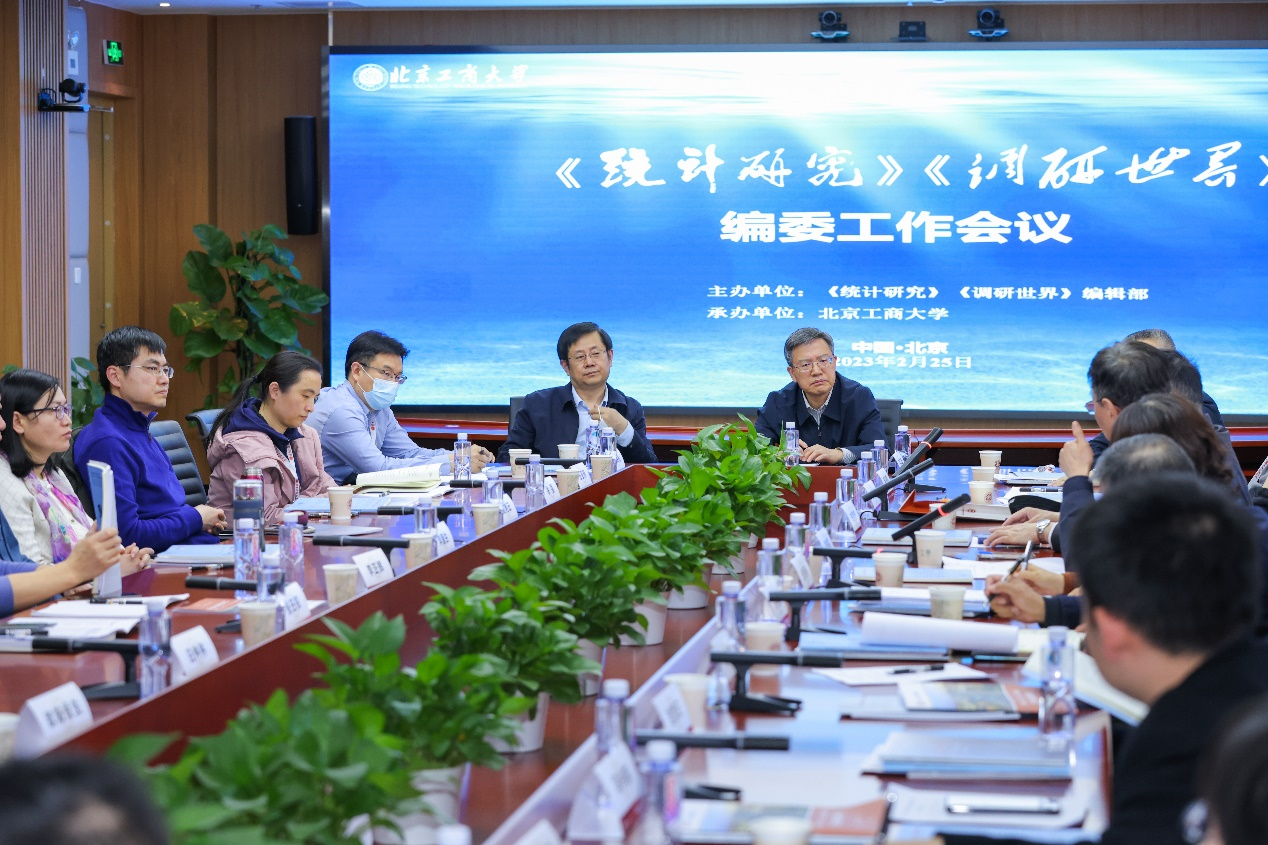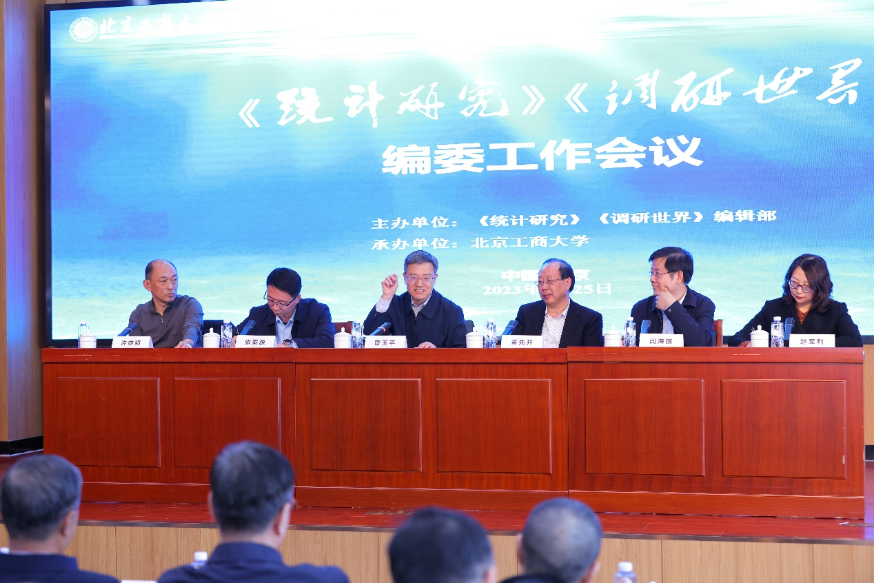 2月25日,由《統(tǒng)計(jì)研究》《調(diào)研世界》編輯部主辦、北京工商大學(xué)承辦的《統(tǒng)計(jì)研究》《調(diào)研世界》編委工作會(huì)議在我校阜成路校區(qū)召開(kāi)。學(xué)校黨委書(shū)記黃先開(kāi),國(guó)家統(tǒng)計(jì)局總統(tǒng)計(jì)師、中國(guó)統(tǒng)計(jì)學(xué)會(huì)常務(wù)副會(huì)長(zhǎng)曾玉平致辭。全國(guó)哲學(xué)社會(huì)科學(xué)工作辦公室組織協(xié)調(diào)處處長(zhǎng)張?zhí)┰矗督y(tǒng)計(jì)研究》主編、《調(diào)研世界》總編輯閭海琪,《調(diào)研世界》常務(wù)副總編輯許亦頻,《統(tǒng)計(jì)研究》常務(wù)副主編趙軍利和來(lái)自北京大學(xué)、中國(guó)人民大學(xué)、浙江大學(xué)、中山大學(xué)、北京師范大學(xué)、上海財(cái)經(jīng)大學(xué)、中央財(cái)經(jīng)大學(xué)、對(duì)外經(jīng)濟(jì)貿(mào)易大學(xué)、東北財(cái)經(jīng)大學(xué)、中南財(cái)經(jīng)政法大學(xué)、東北師范大學(xué)、江西財(cái)經(jīng)大學(xué)、天津財(cái)經(jīng)大學(xué)、廣州大學(xué)、浙江財(cái)經(jīng)大學(xué)、浙江工商大學(xué)、上海對(duì)外經(jīng)貿(mào)大學(xué)等20余所高校的40余位統(tǒng)計(jì)學(xué)及相關(guān)學(xué)科專家學(xué)者(編委)出席本次會(huì)議。