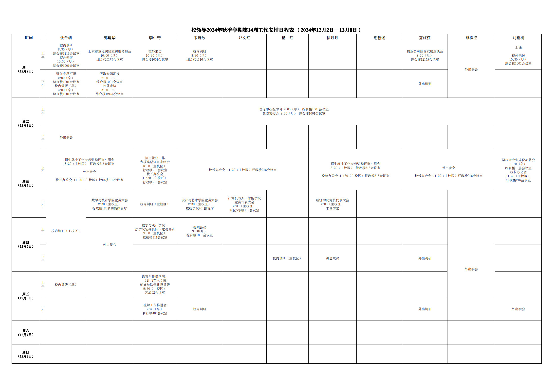 第14周會(huì)議安排