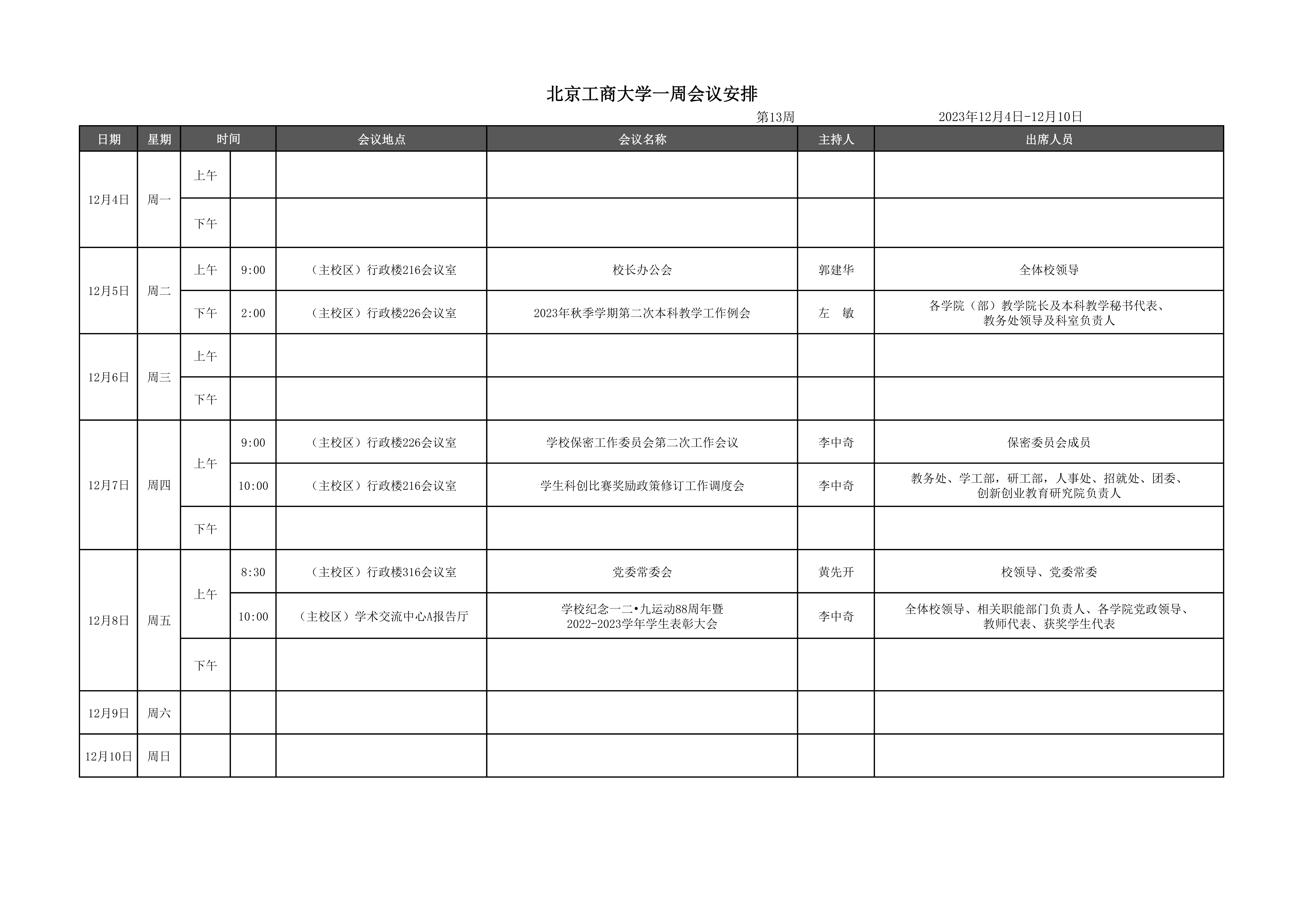 第13周會(huì)議安排