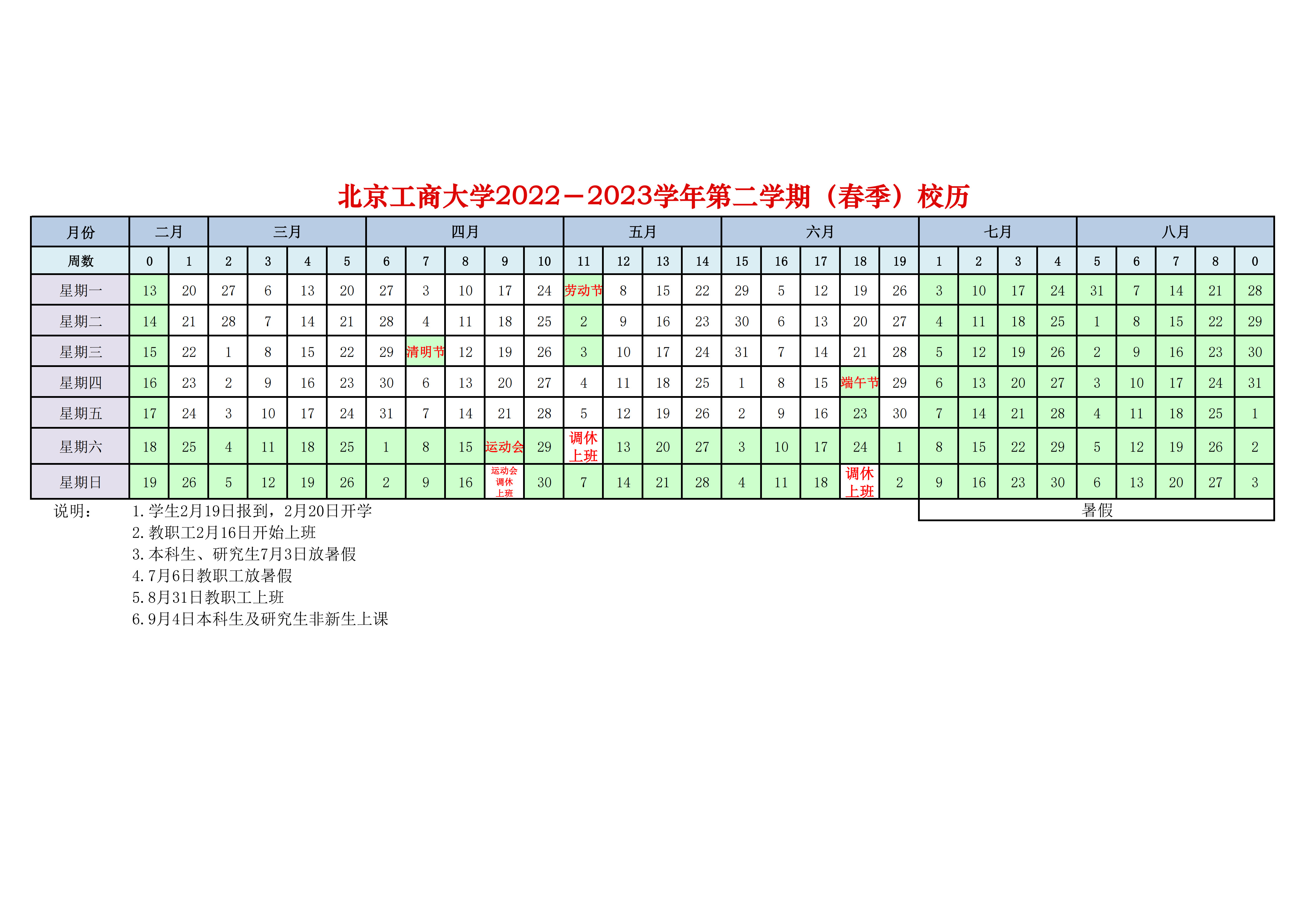 2022-2023學(xué)年第二學(xué)期(春季)校歷