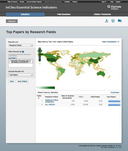 圖1:2019年1月,農業科學學科進入ESI排名世界前1%行列