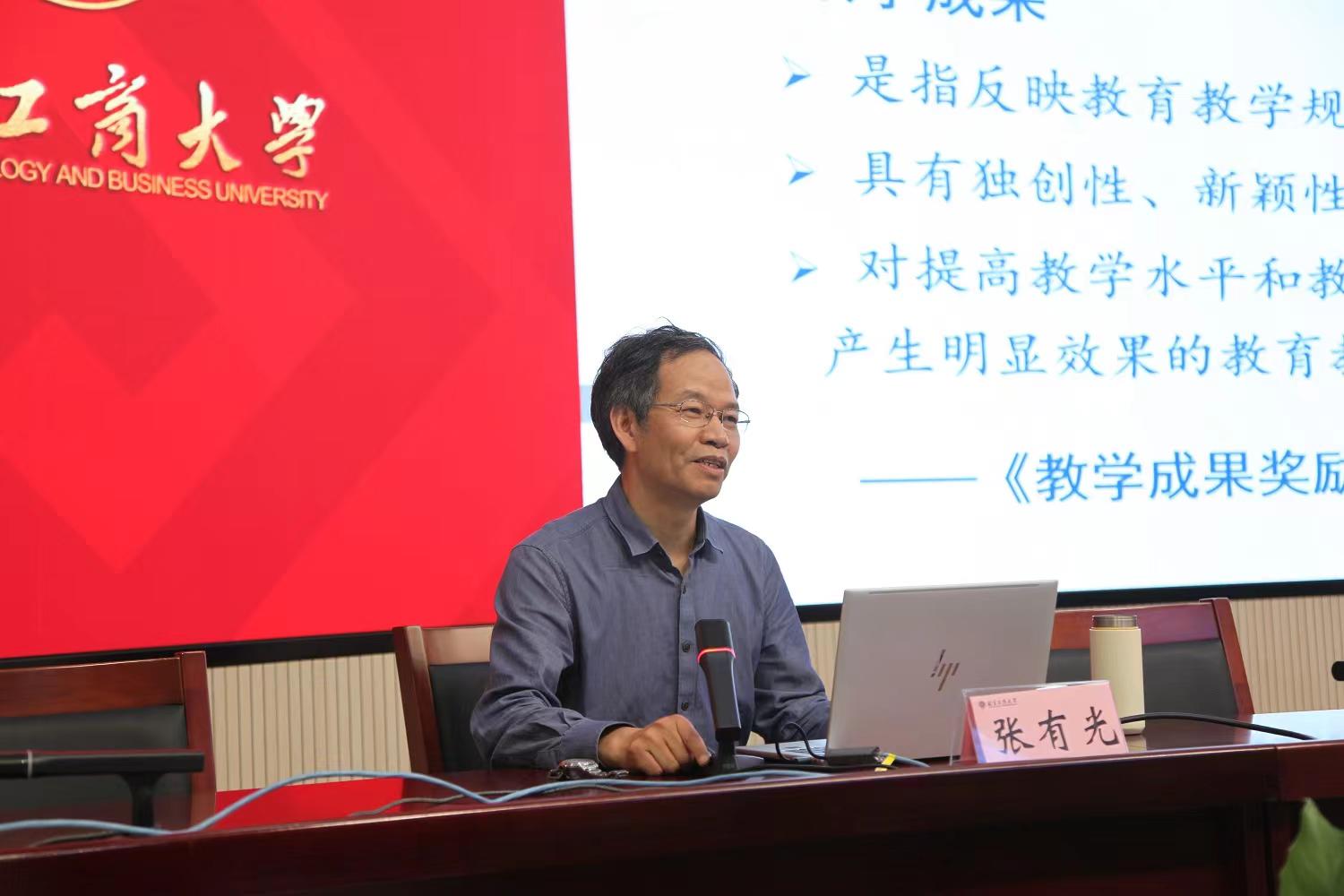 張有光教授以他在2018年獲得的國家級教學(xué)成果獎(jiǎng)為例,從教學(xué)問題的凝練、解決問題的方法、教學(xué)成果的創(chuàng)新點(diǎn)和成果的推廣應(yīng)用四個(gè)方面與在場教師們進(jìn)行了交流,強(qiáng)調(diào)成果的原創(chuàng)性、實(shí)用性和推廣價(jià)值的重要性。他提出,一個(gè)優(yōu)秀的教學(xué)成果不僅要在理論上有所創(chuàng)新,更要在實(shí)際教學(xué)中得到有效應(yīng)用,能夠?qū)W(xué)生的學(xué)習(xí)和成長產(chǎn)生積極影響。張教授結(jié)合自己多年的教學(xué)實(shí)踐,闡述了如何通過課程設(shè)計(jì)、教學(xué)方法和評價(jià)體系的改革來激發(fā)學(xué)生的學(xué)習(xí)興趣,提高教學(xué)效果。