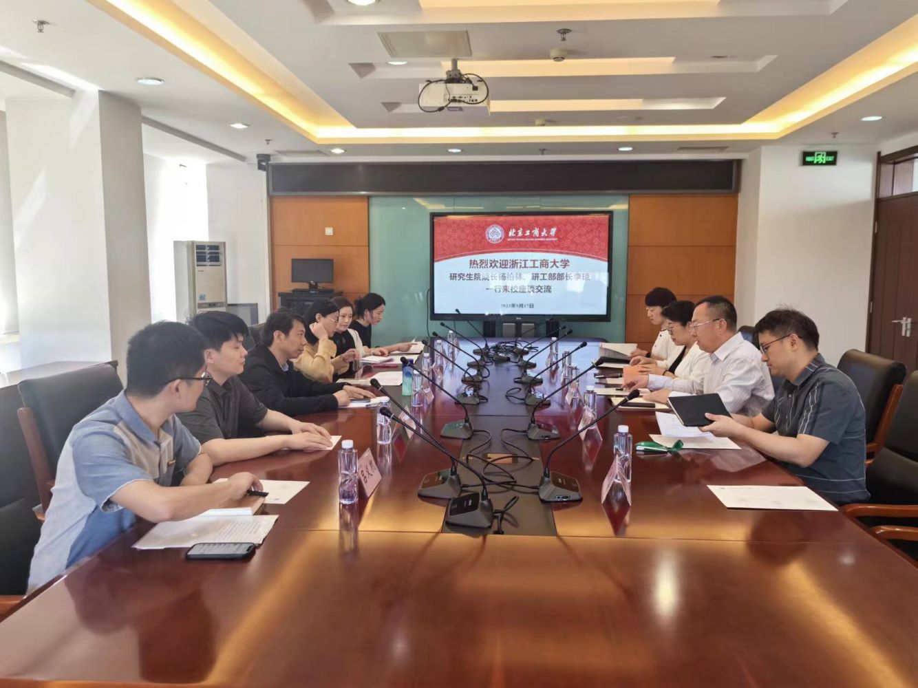 楊柏林對(duì)我校的熱情接待表示感謝,介紹了浙江工商大學(xué)的歷史沿革、學(xué)科專業(yè)現(xiàn)狀、博士點(diǎn)建設(shè)等情況,希望借助北京工商大學(xué)的學(xué)科優(yōu)勢(shì),在ESI學(xué)科建設(shè)、交叉學(xué)科建設(shè)、學(xué)部制改革等方面得到更多的指導(dǎo)和支持,開(kāi)展深入的合作,實(shí)現(xiàn)優(yōu)勢(shì)互補(bǔ)、共建共贏。