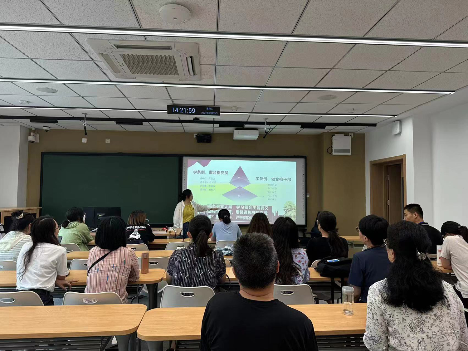 王曉慶老師作為理論學習領學人,就《中國共產黨紀律處分條例》相關內容與教職工一起進行了細致學習,學習主要內容包括《條例》整體情況、修訂意義、修訂主旨、具體內容等,并結合具體案例幫助老師加深對條例內容的理解。