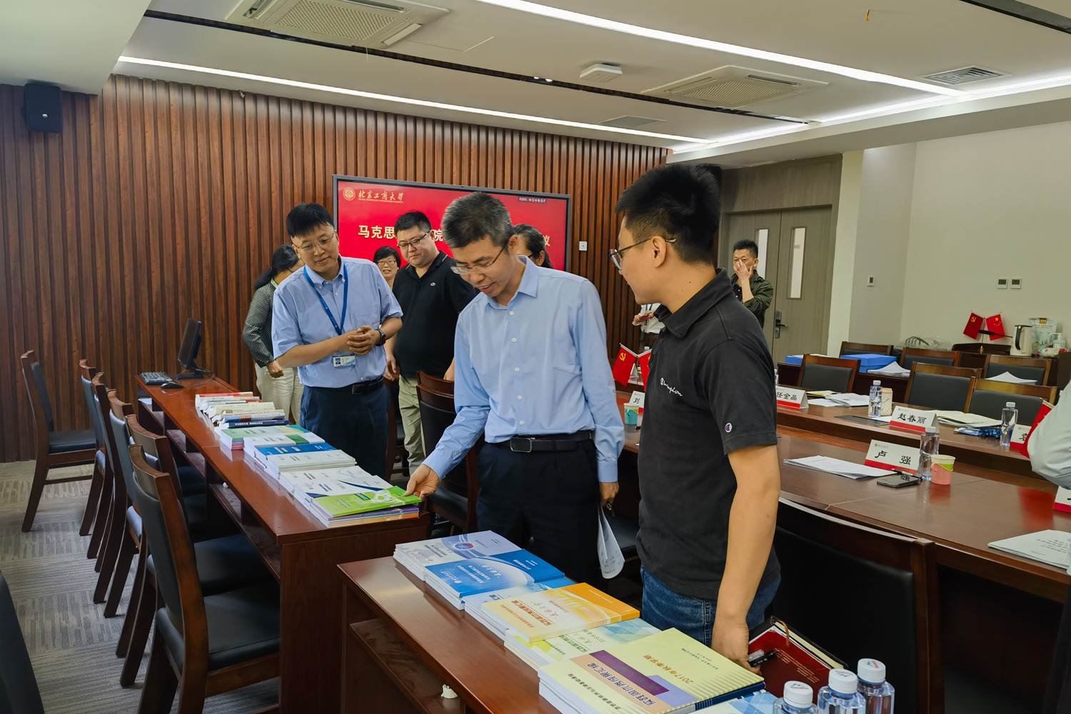 5月27日,黨委常委、副校長毛新述、語言與傳播學院書記劉影、教務處副處長盧強、學生處副處長黨浩、法學院副院長劉冰、校督導陳曉白、王治宇赴馬克思主義學院檢查自評報告、教學資料等。毛新述指出要對標對表,更多著墨、更好呈現思政課“1234N”綜合改革效果。
